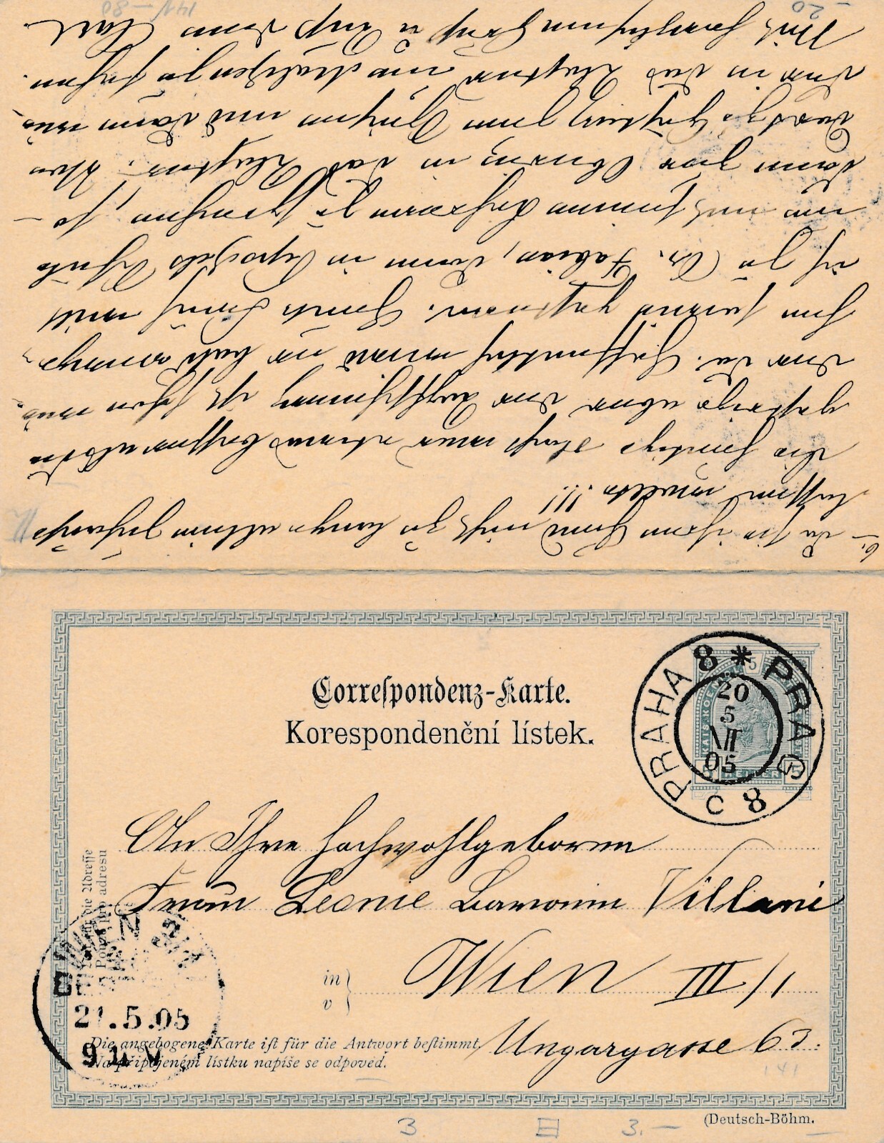 5 Heller Ganzsachen - Karte 1905 aus Praha - Prag + Antwortkarte (12525)