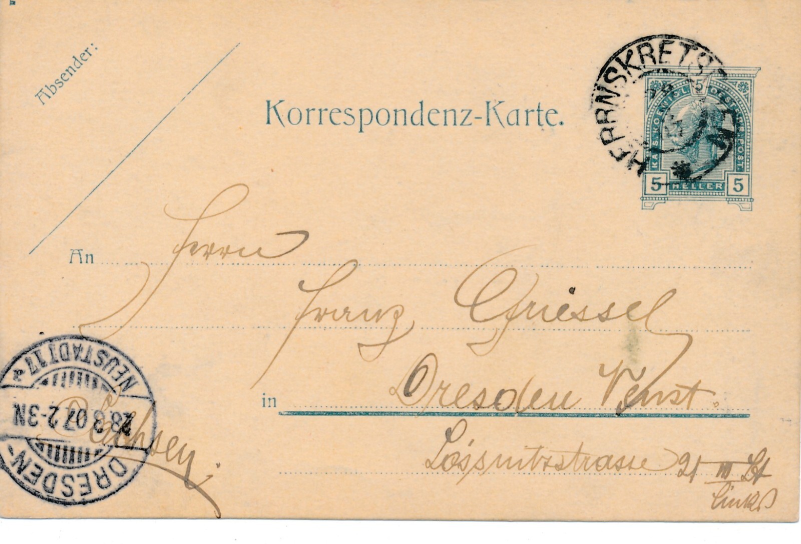 5 Heller Ganzsachen - Karte 1907 aus Herrnskretschen (9980)
