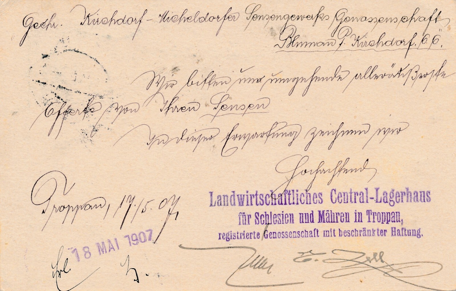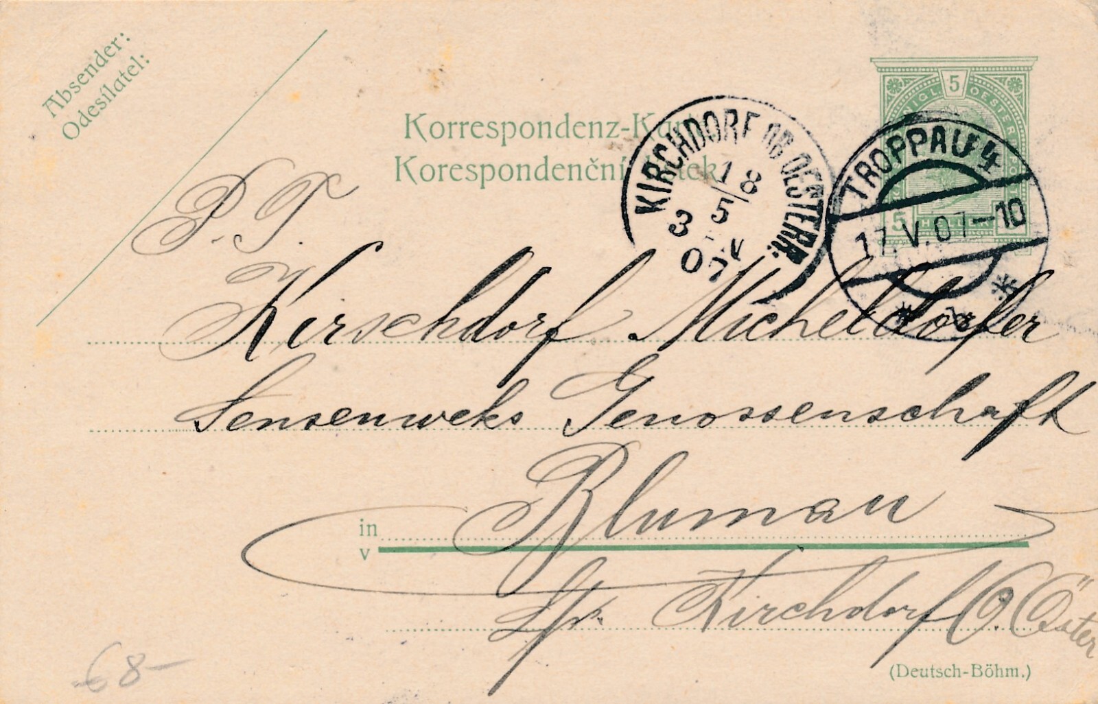 5 Heller Ganzsachen - Karte 1907 aus Troppau (11386)
