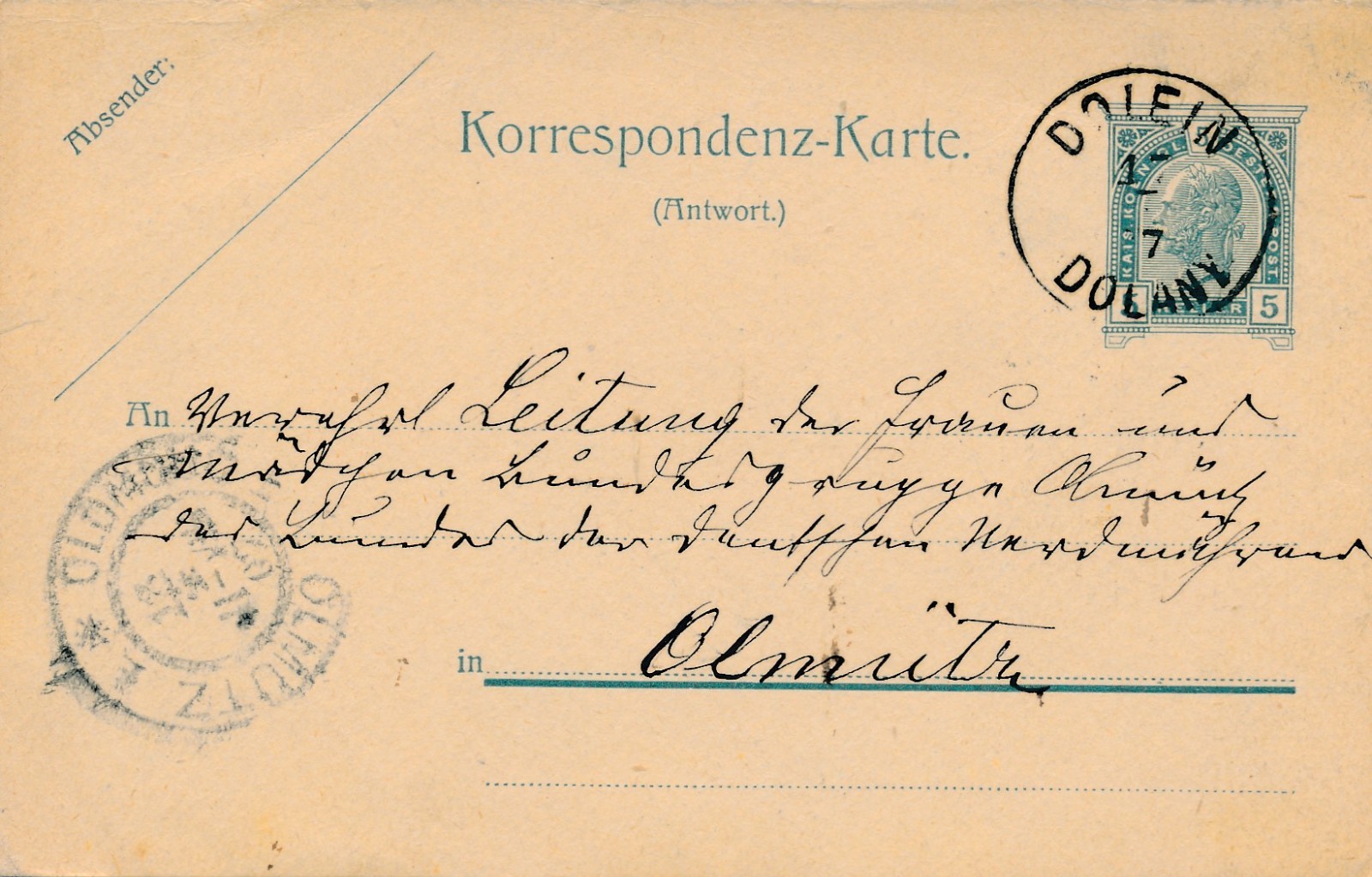 5 Heller Ganzsachen - Karte aus Dolein (16213)
