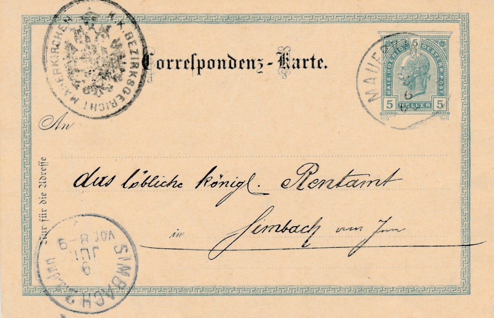 5 Heller Ganzsachen - Karte aus Mauerbib (10558)