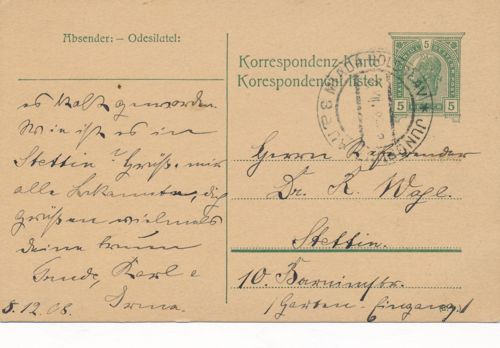 5 Heller - Ganzsachen - Karte aus Miada Boleslav (13367)