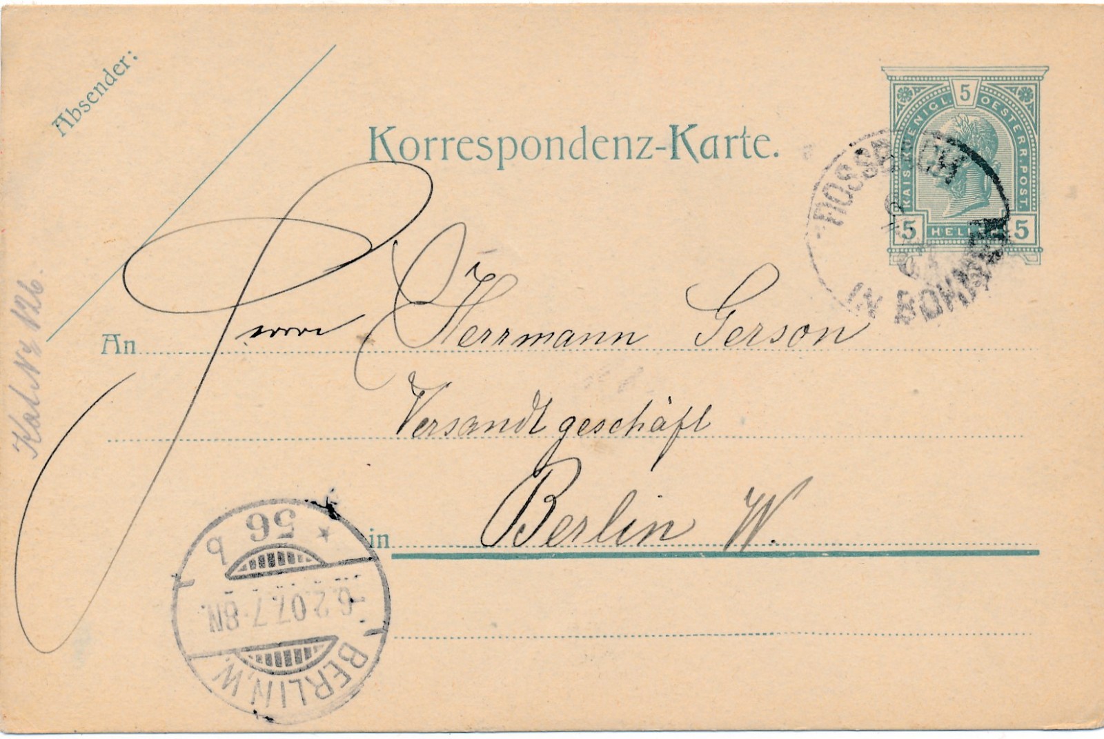 5 Heller Ganzsachen - Karte aus Rossbach (16289)