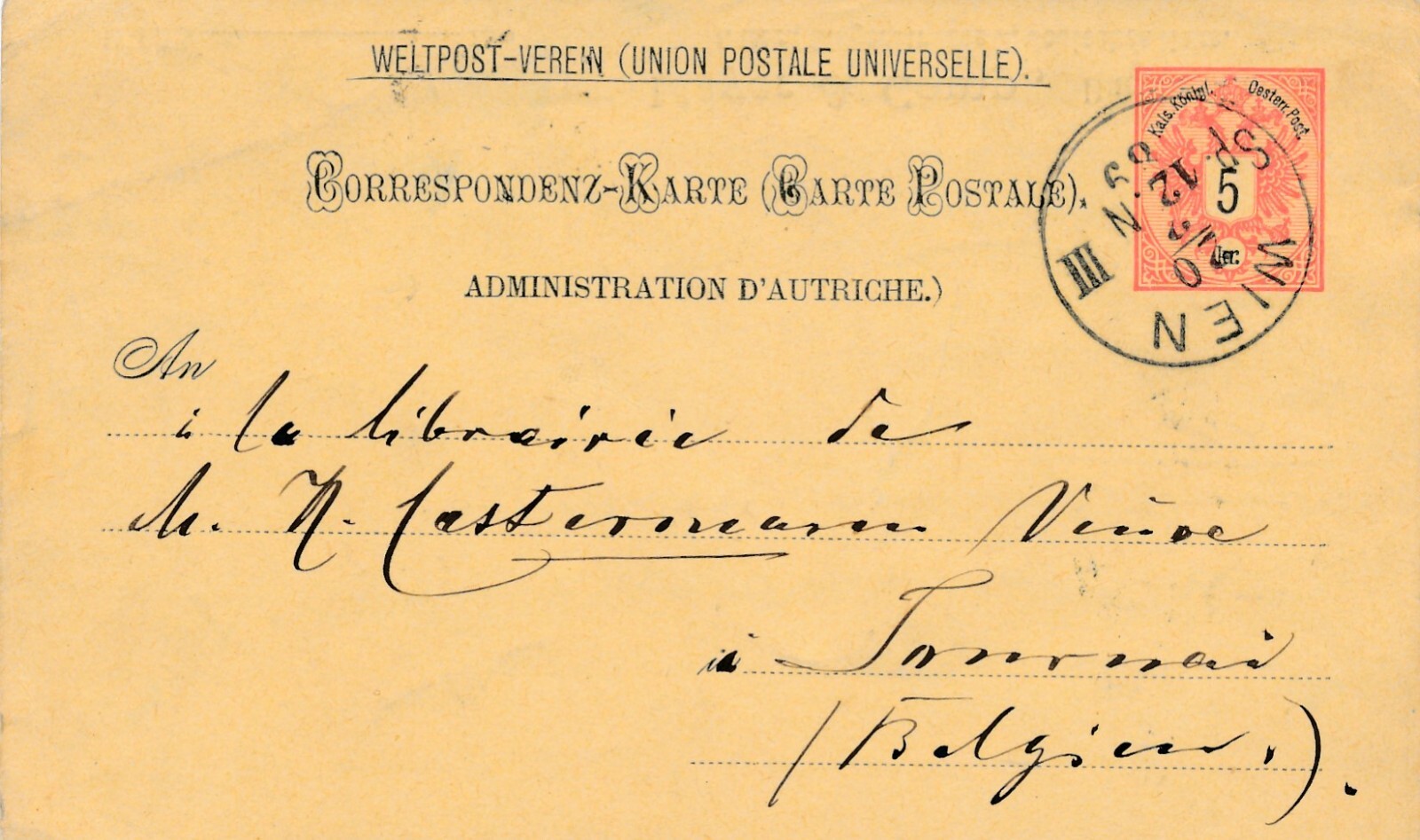 5 Kreuzer - Ganzsachen - Karte aus 1889 aus Wien (11341)