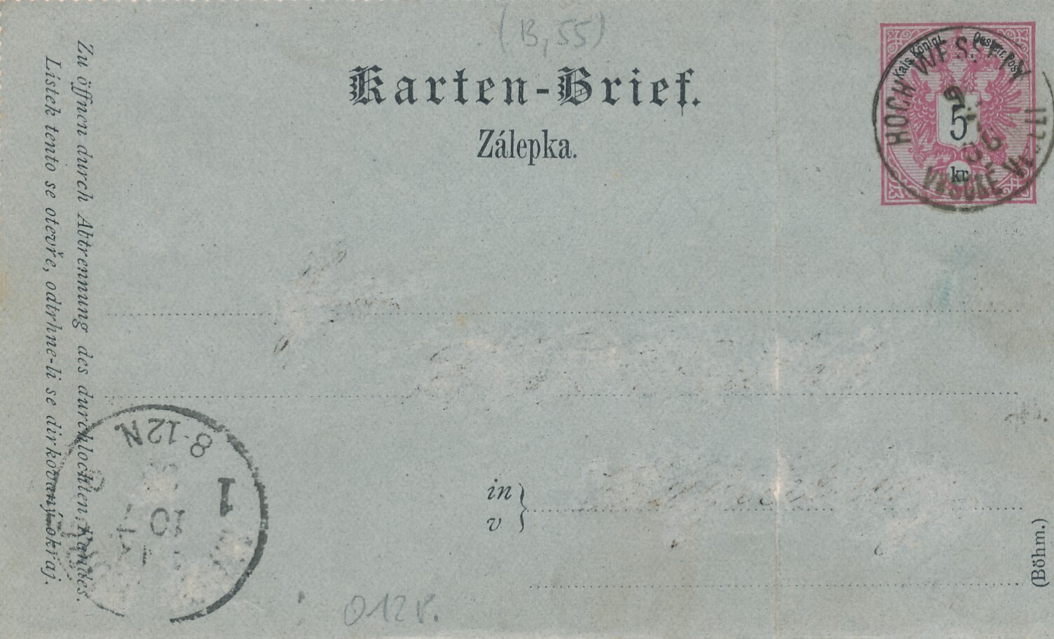 5 Kreuzer Ganzsachen - Kartenbrief 1886 aus Hochwessely (10993)