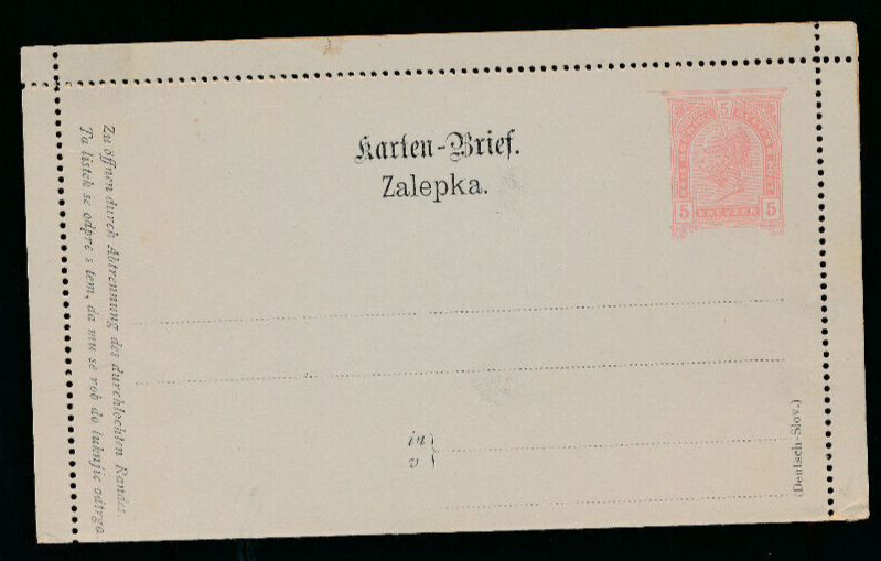 5 Kreuzer Ganzsachen - Kartenbrief (Deutsch. Slov ) ungebraucht (3521)