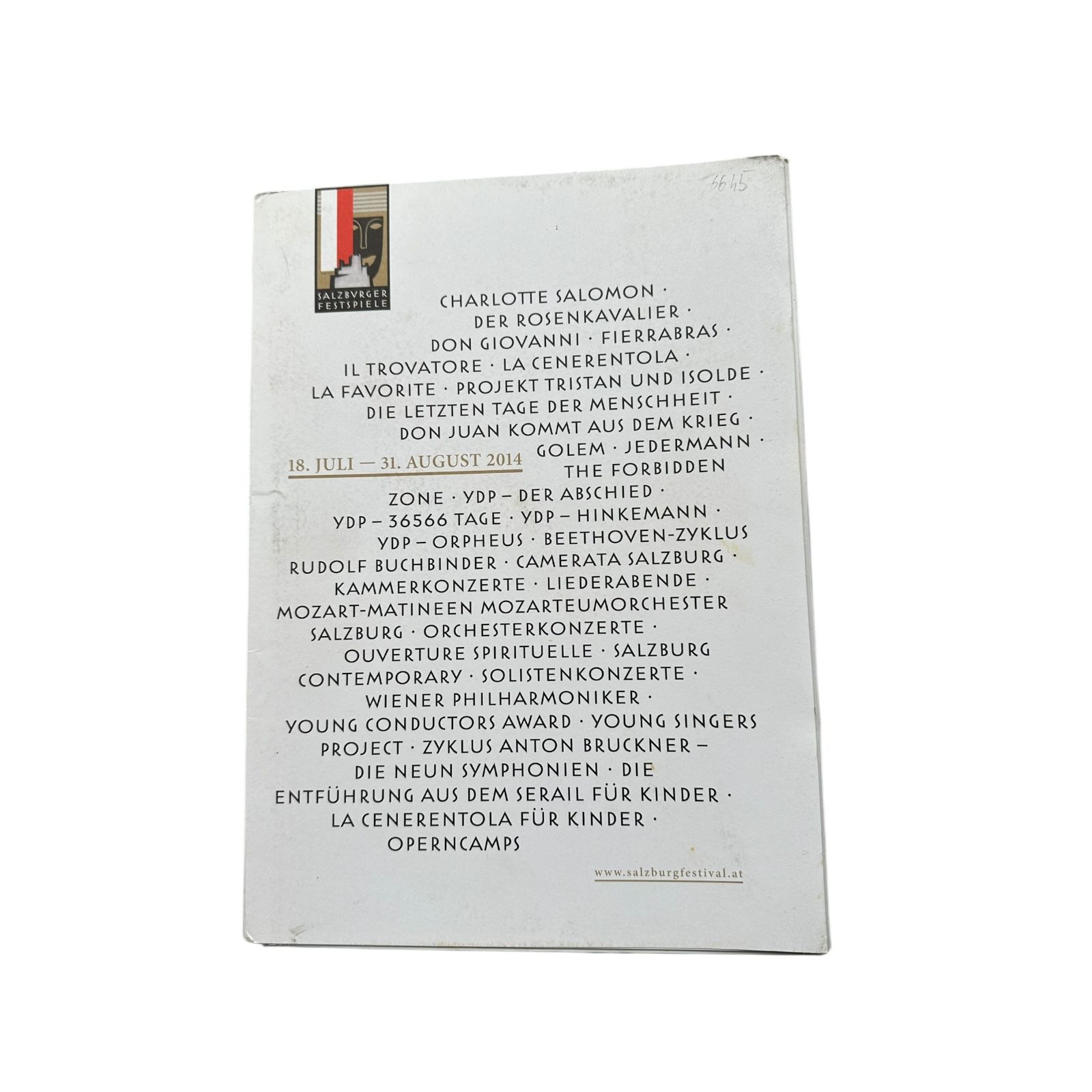 6645 PROGRAMMINFOMAPPE SALZBURGER FESTSPIEL 18. JULI - 31. AUGUST 2014. MIT