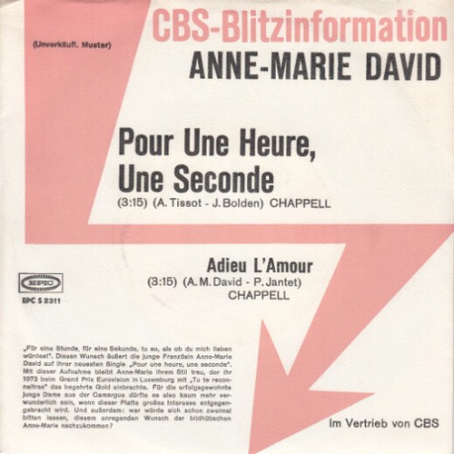 7", Single, Promo Anne-Marie David - Pour Une Heure, Une Seconde