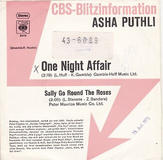 7", Single, Promo Asha Puthli - One Night Affair