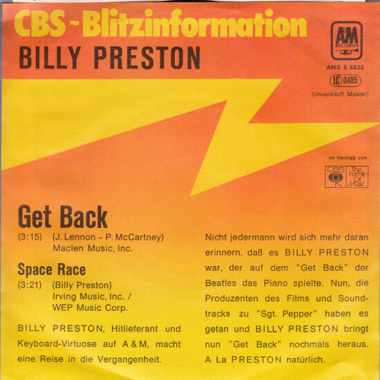 7", Single, Promo Billy Preston - Get Back/Space Race