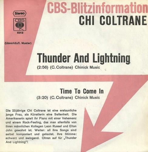 7", Single, Promo Chi Coltrane - Thunder And Lightning