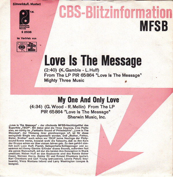 7", Single, Promo MFSB Featuring The Three Degrees - Love Is The Message