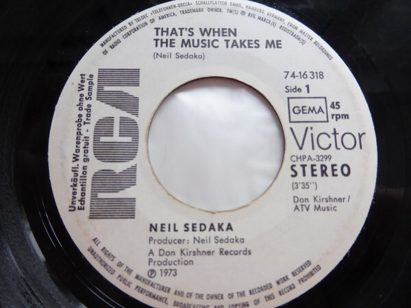 7", Single, Promo Neil Sedaka - That's When The Music Takes Me