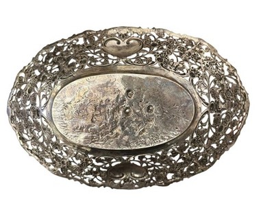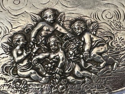 800 Silber Schale Relief Durchbruch Putte Engel Halbmond Krone 324 g 29x19 cm X9