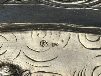 • Punzen: Halbmond und Krone (deutsche Silbermarkierung) sowie „800“ Silberlegierung