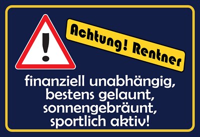 Achtung rentner pension lustig humor 12x18 / 20x30 / 30x40 blech od. holz