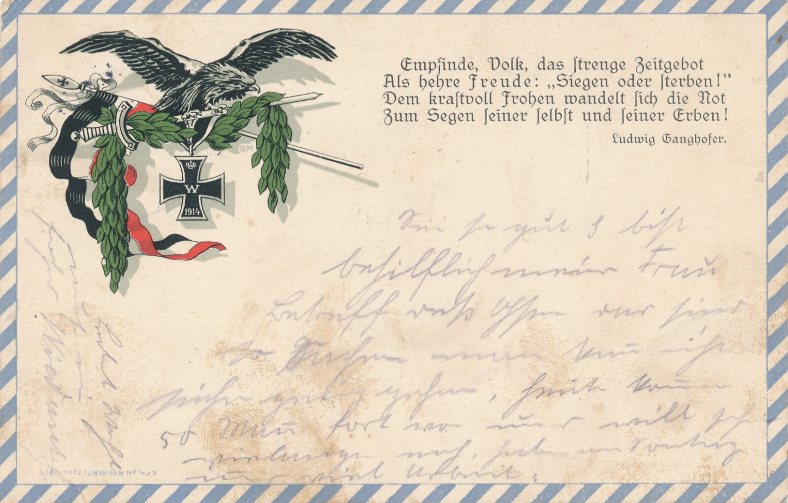 AK Adler mit Schwert und Schwarzen Kreuz Militaria Ansichtskarte (14618)