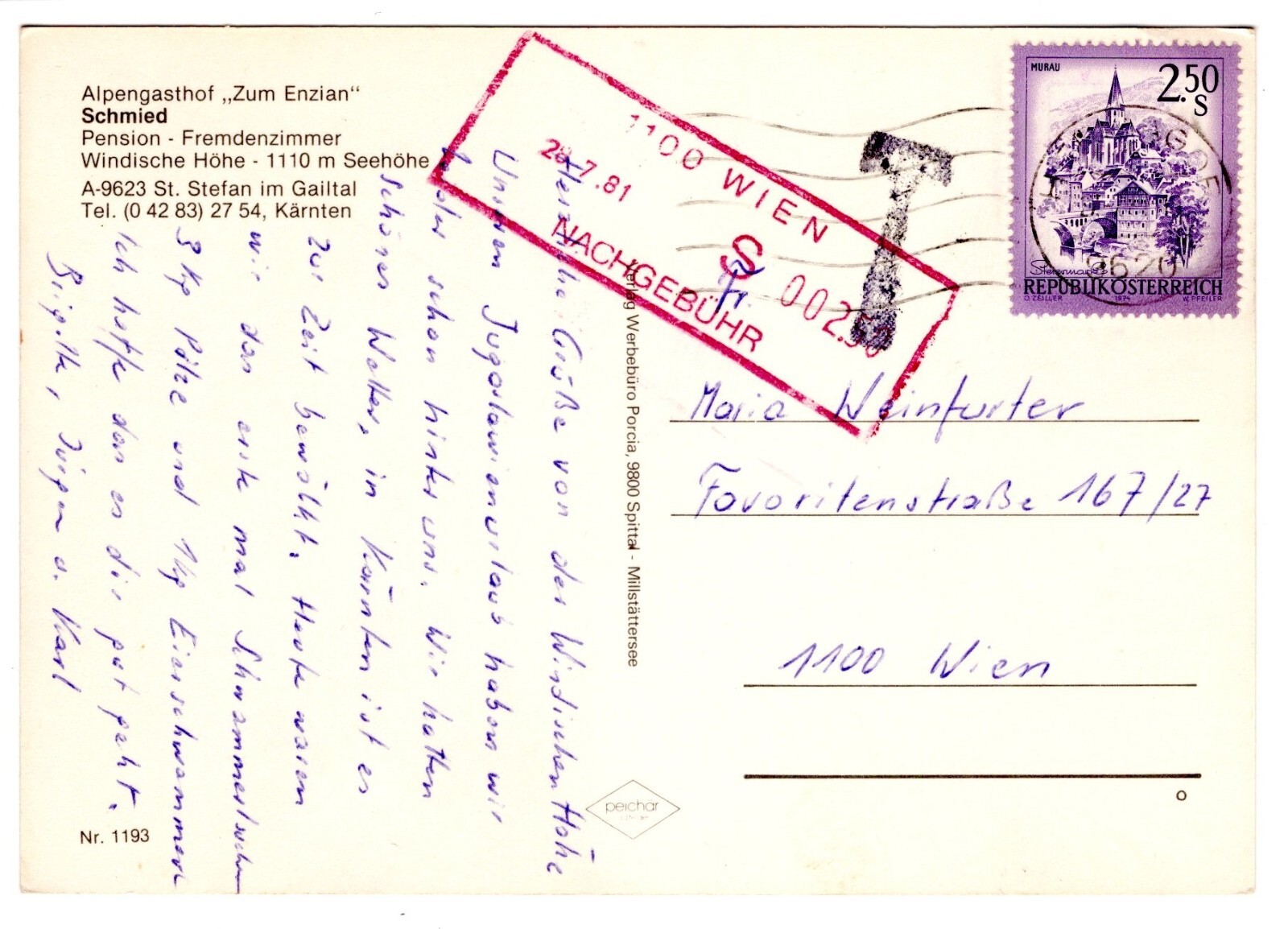 AK, Alpengasthof Zum Enzian, St. Stefan, Kärnten, Ansichtskarte (S5763)