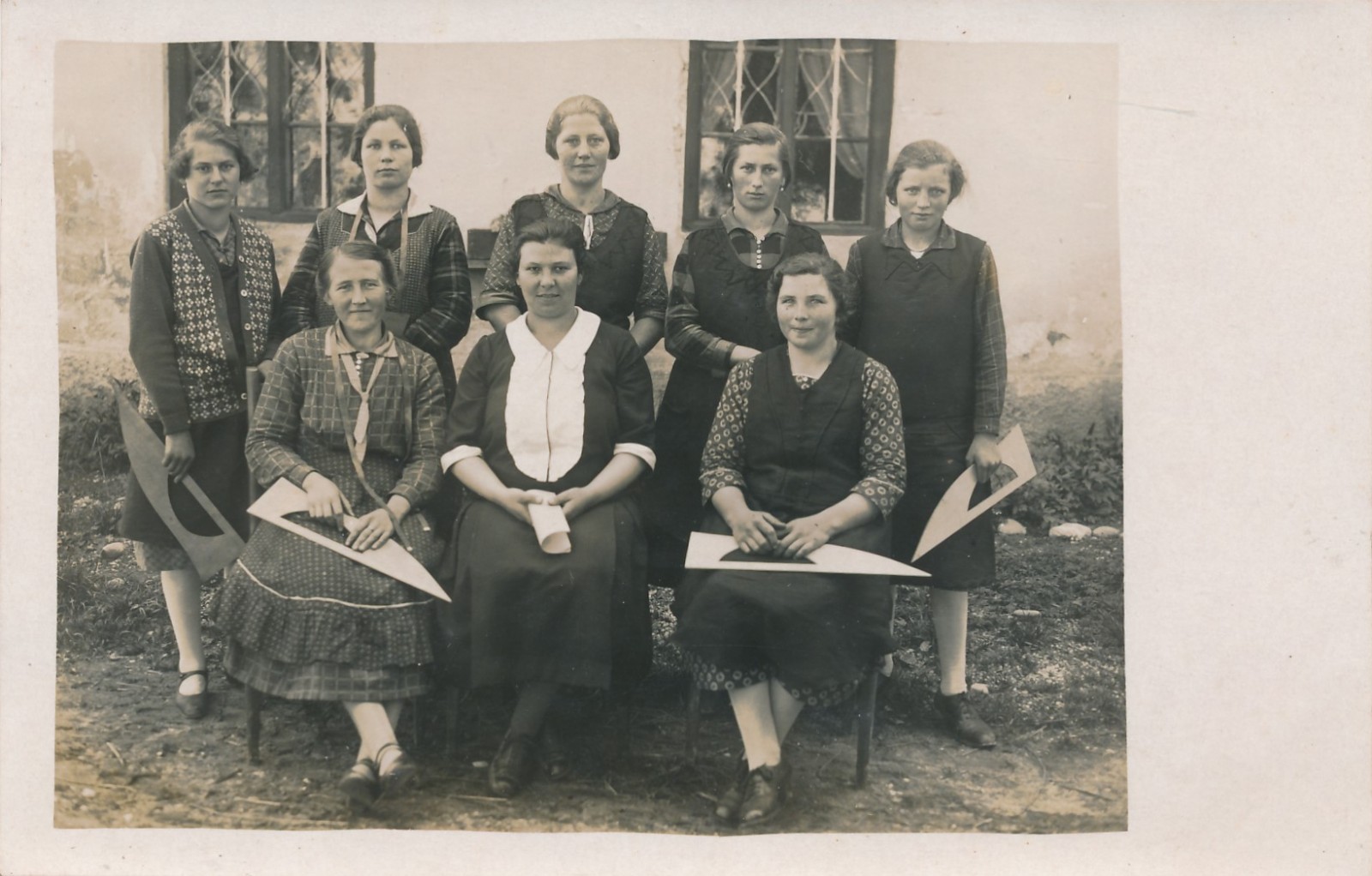 AK Annodazumals acht Frauen vor einem Haus Ansichtskarte (15761)