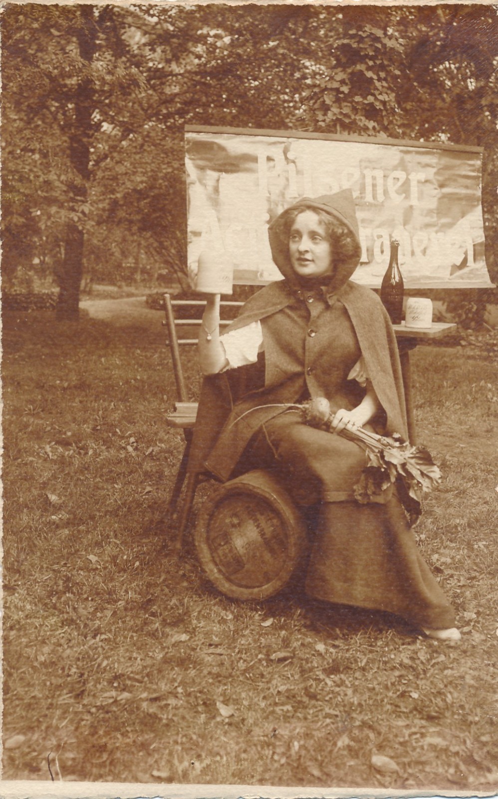 AK Annodazumals Frau auf Bierfass Ansichtskarte (16146)