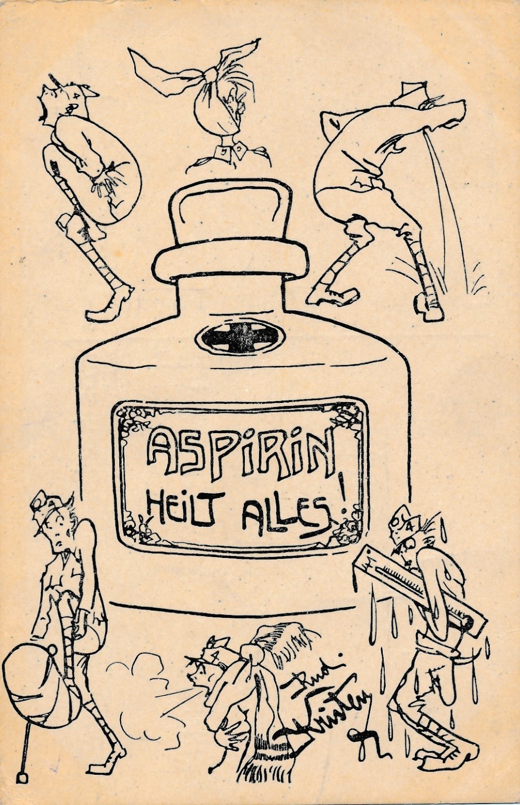 AK Aspirin heilt alles mit Soldaten Ansichtskarte (16884)