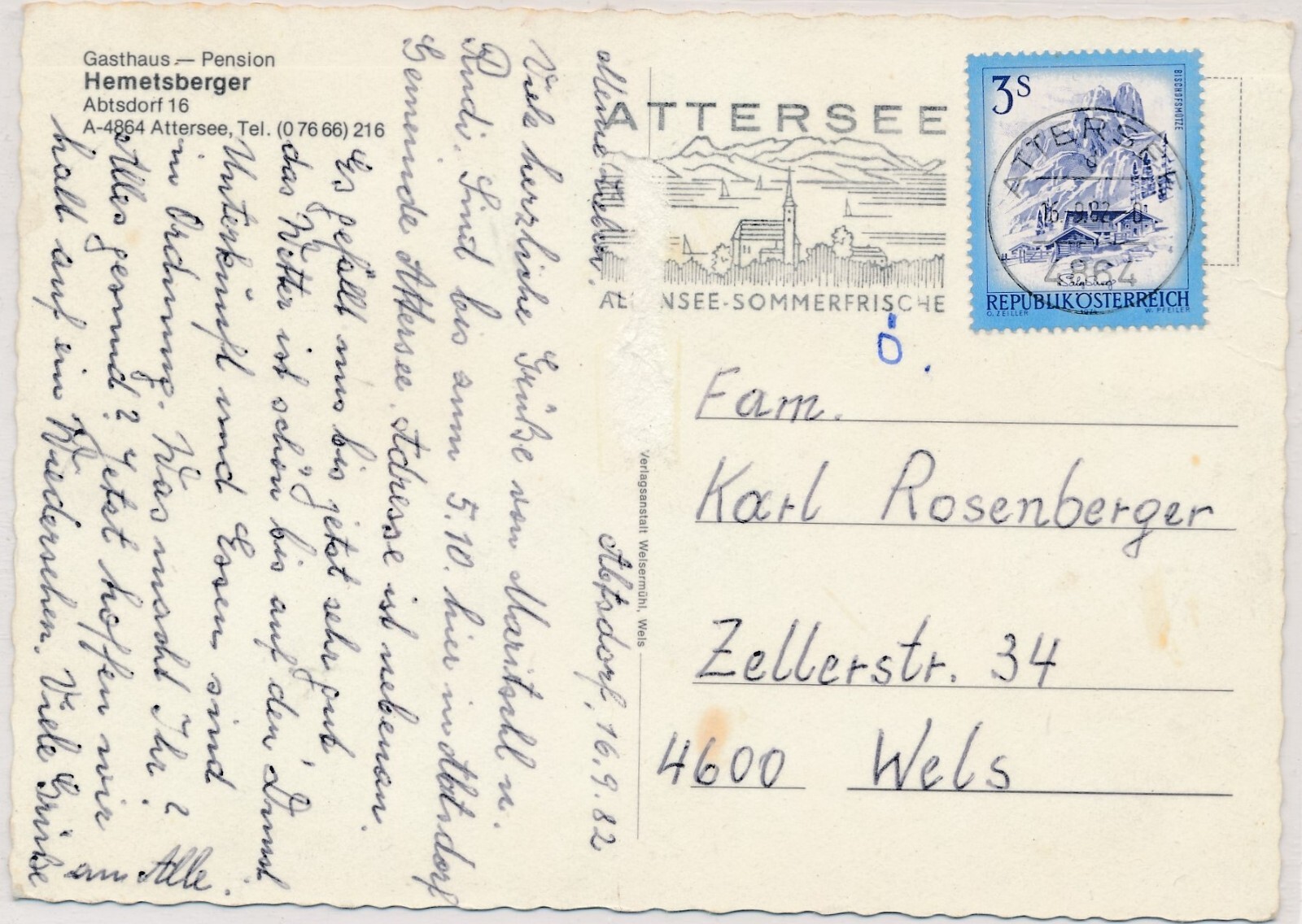 AK, Attersee, Pension Hemetsberger, Oberösterreich (S2664)