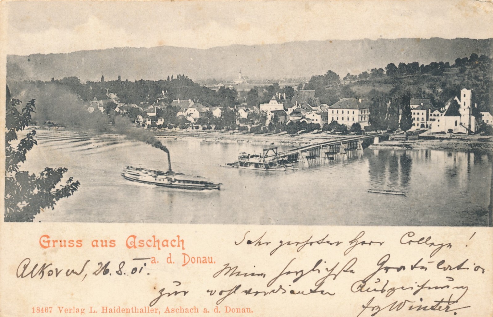 AK aus Aschach mit Dampfer Oberösterreich (7942)