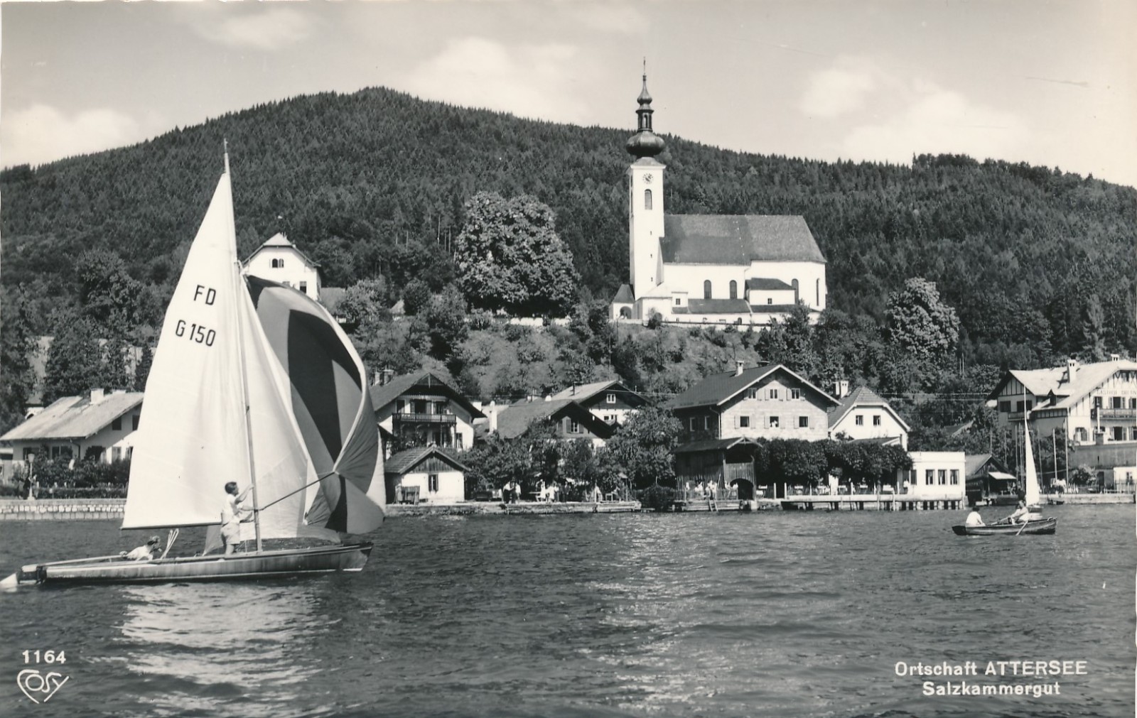AK aus Attersee mit Segelboot Oberösterreich Ansichtskarte (15412)