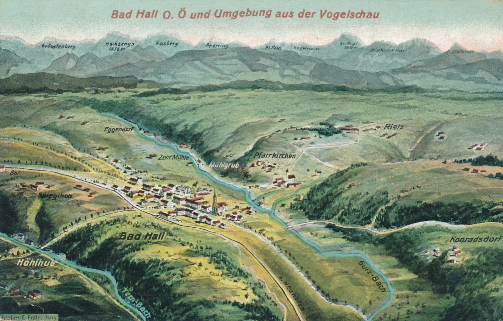 AK aus Bad Hall und Umgebung aus der Vogelschau Oberösterreich (7055)