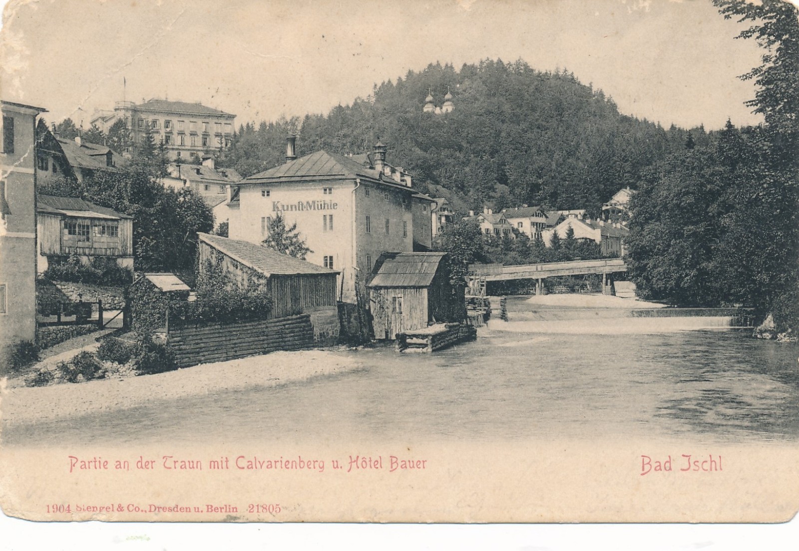 AK aus Bad Ischl mit Calvarienberg und Hotel Bauer Ansichtskarte (15198)
