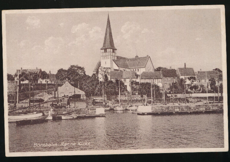 AK aus Bornholm Ronne Kirke mit Hafen Dänemark (692)