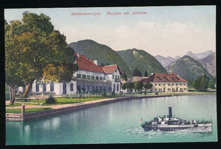AK aus Burgau am Attersee mit Dampfer Oberösterreich (4732)