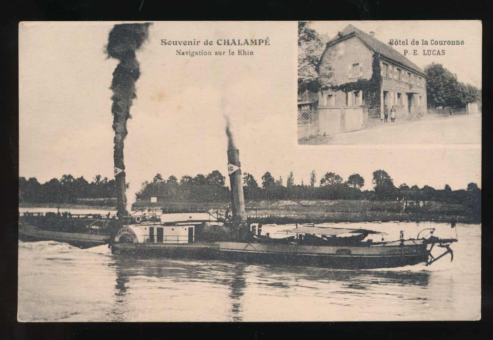 AK aus Chalampe Frankreich mit Dampfer und Hotel de la Couronne P.E. Lucas (524)
