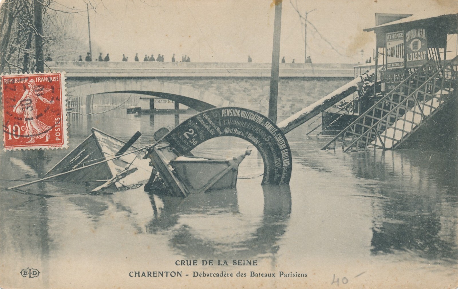 AK aus Charenton Hochwasserkatastrophe Frankreich 1910 (6590)
