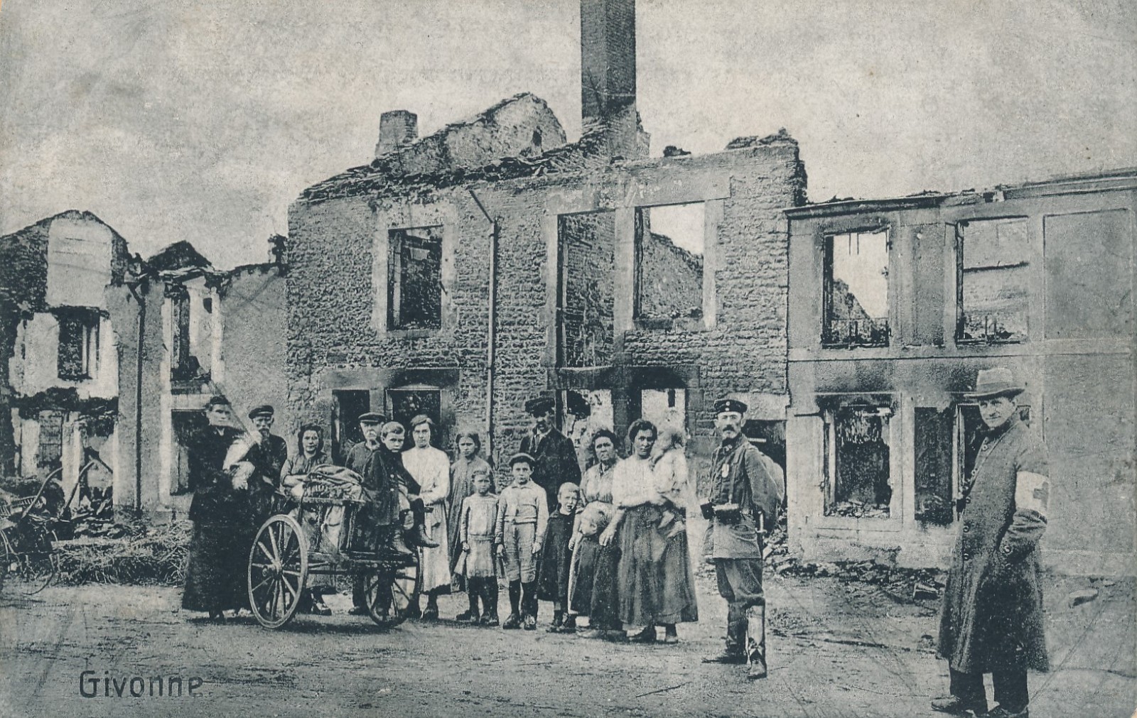 AK aus Givonne Kaputtes Haus davor Menschen Militaria (14996)