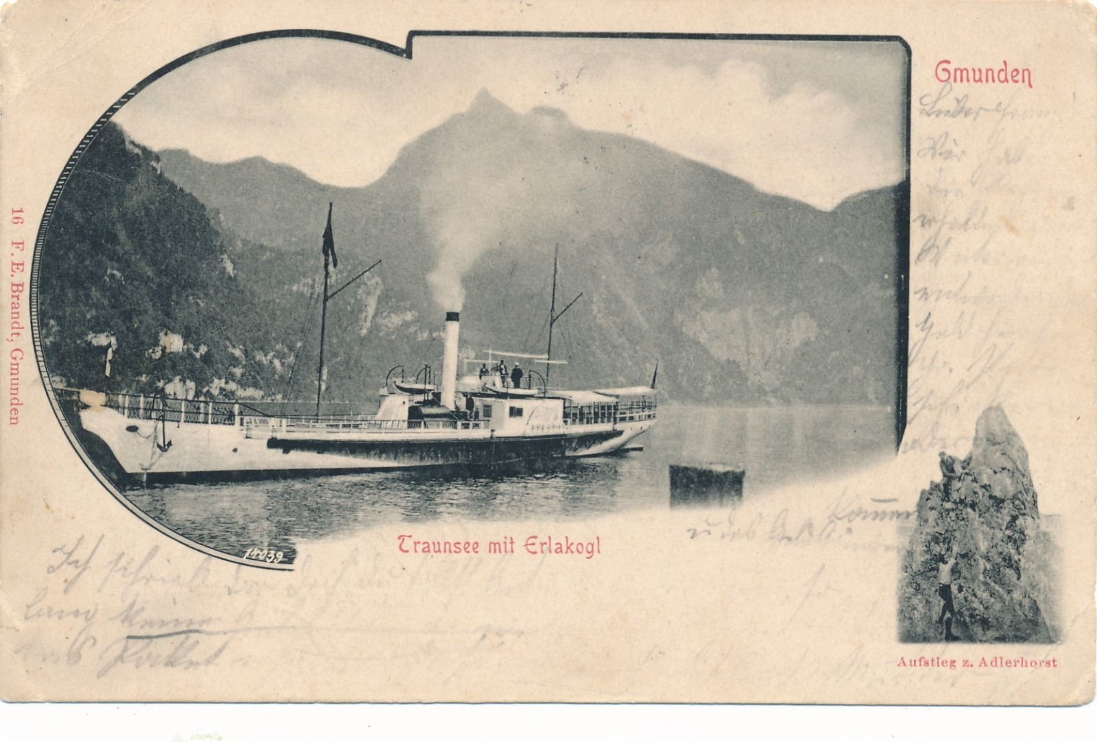 AK aus Gmunden mit Dampfer u Traunsee Erlakogel Ansichtskarte (15052)