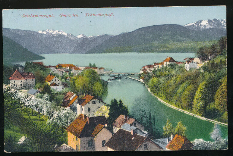 AK aus Gmunden Traunausfluß Oberösterreich (985)