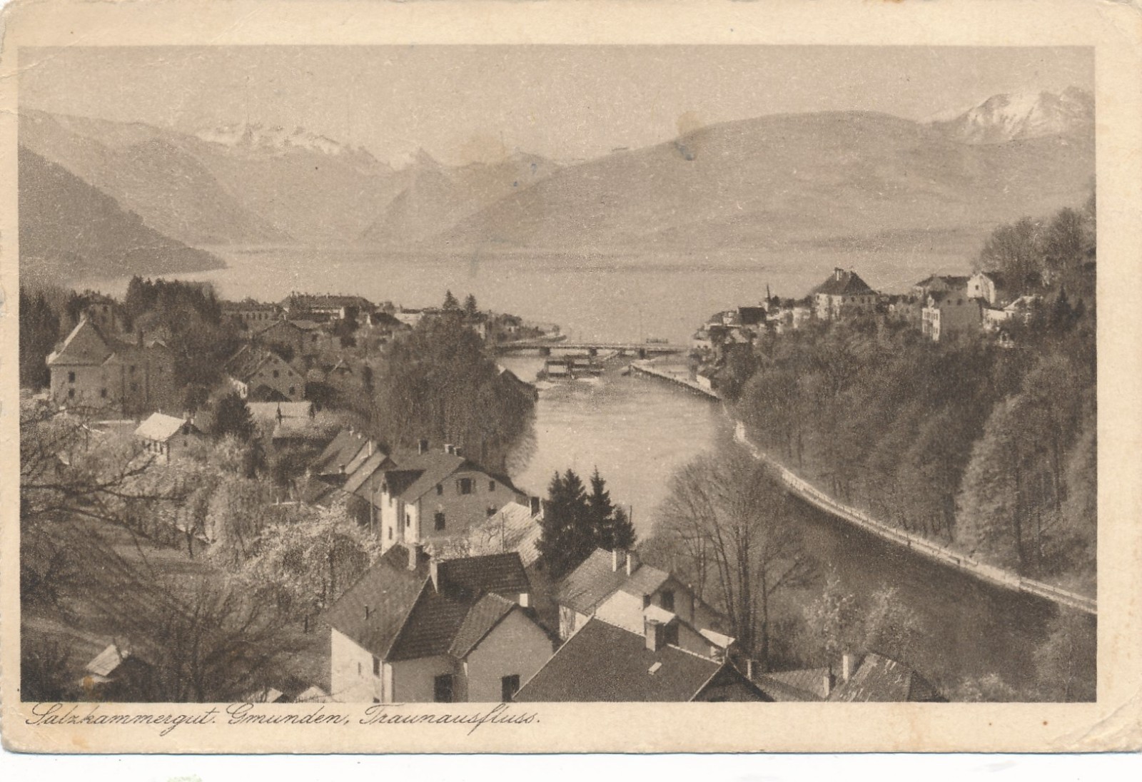 AK aus Gmunden Traunausfluss Oberösterreich Ansichtskarte (15496)