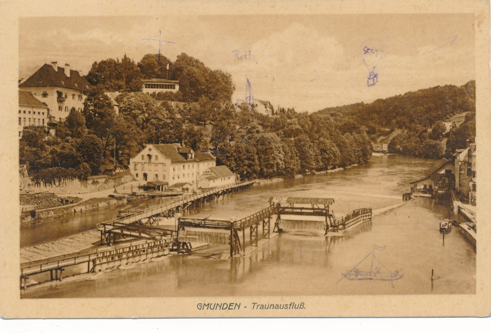 AK aus Gmunden Traunausfluß Oberösterreich Ansichtskarte (15680)
