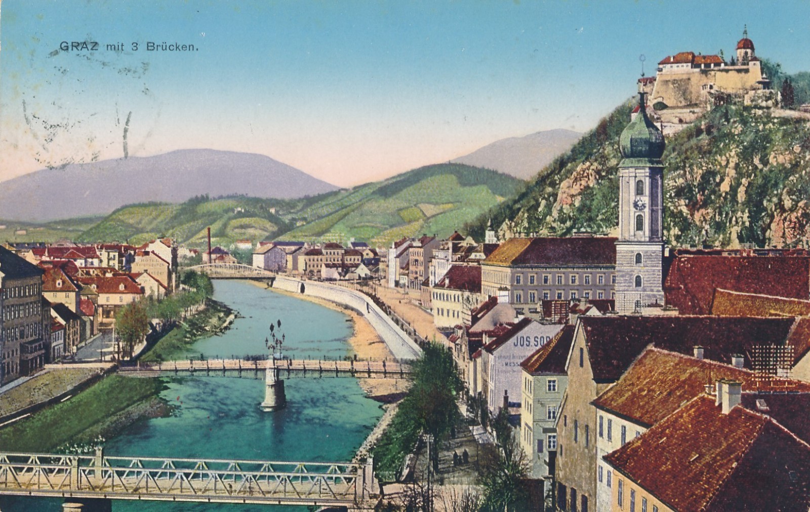 AK aus Graz mit drei Brücken Steiermark Ansichtskarte (18007)