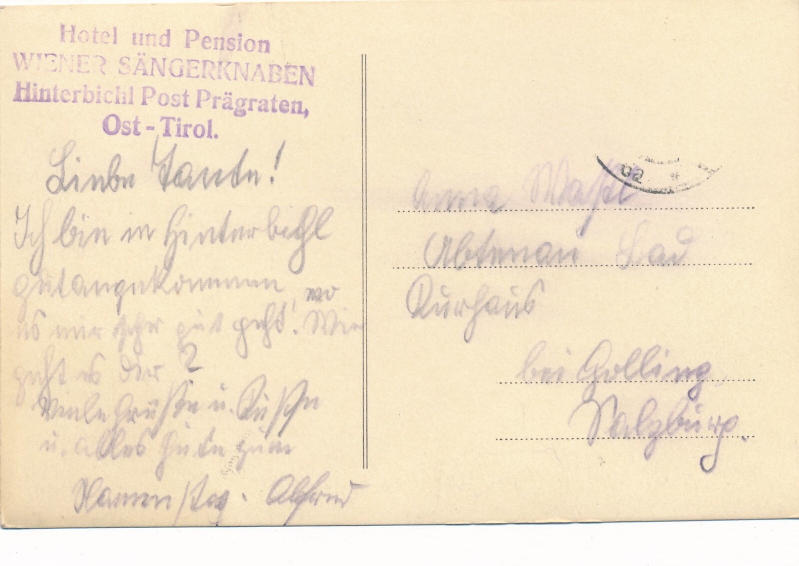 AK aus Hinterbichl mit Pension Wiener Sängerknaben Tirol (7903)