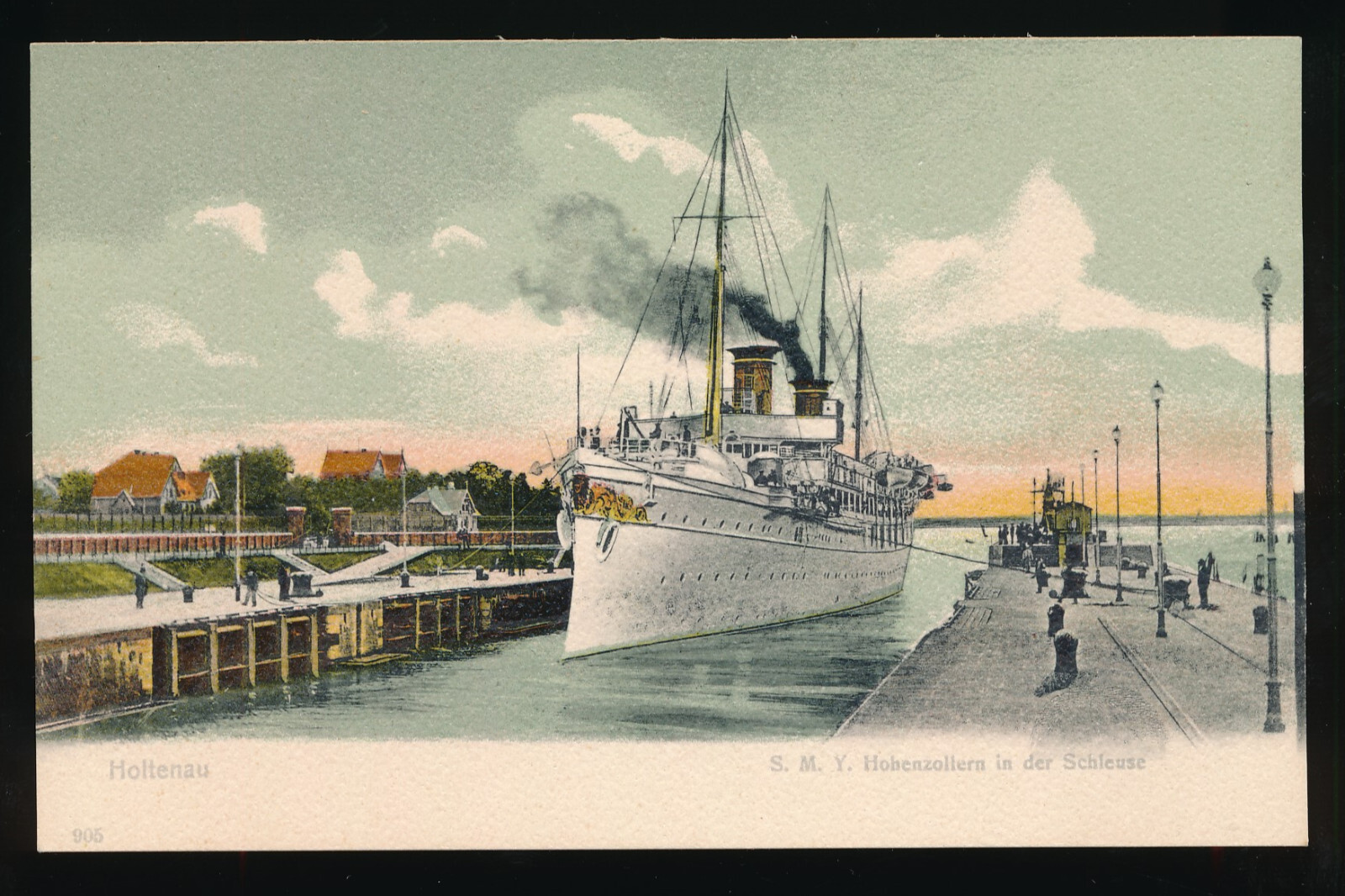 AK aus Holtenau vom der S.M.Y. Hohenzollern in der Schleuse Dampfer (248)