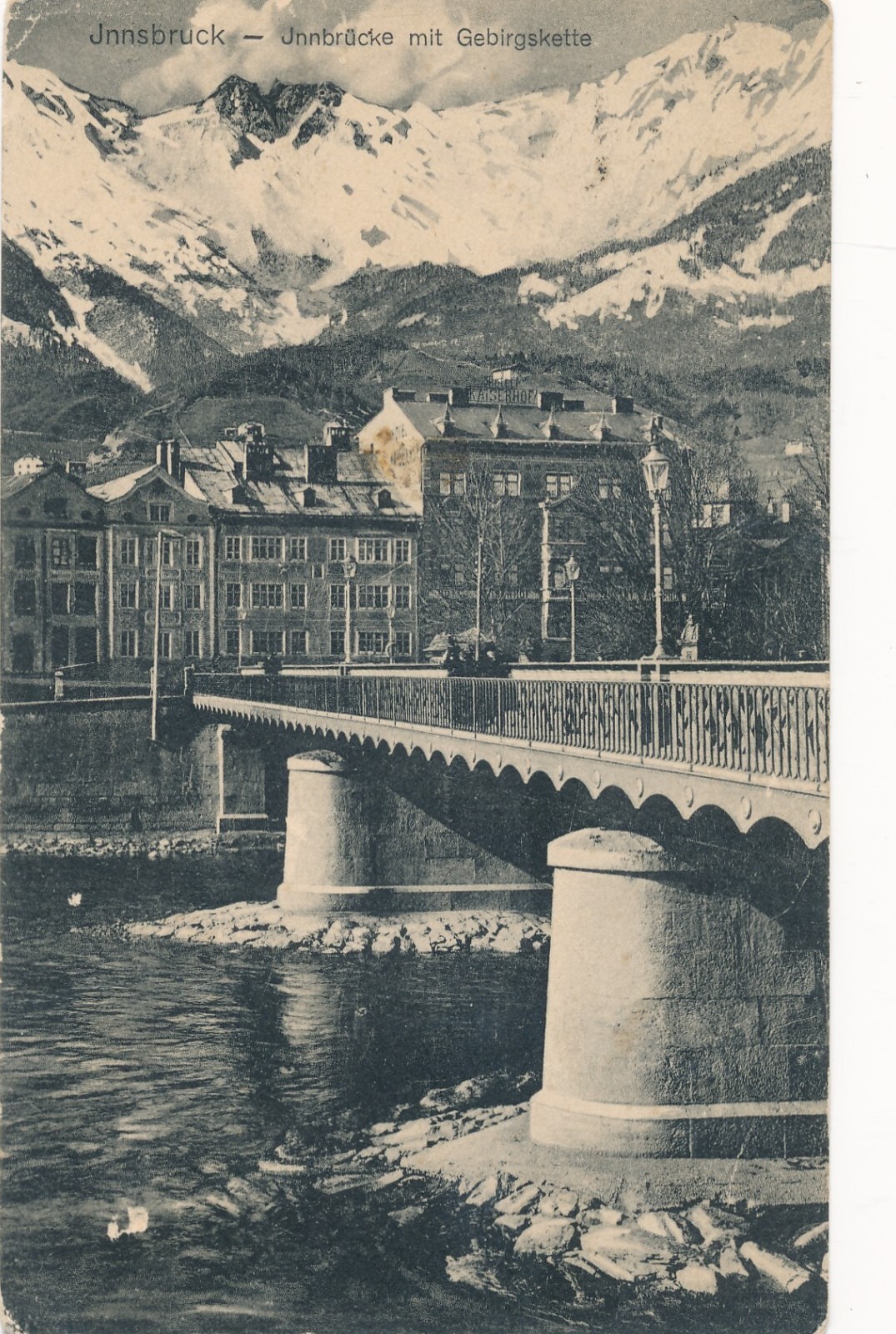 AK aus Innsbruck Jnnbrücke mit Gebirgskette Tirol Ansichtskarte (14177)