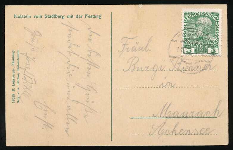 AK aus Kufstein vom Stadtberg mit der Festung Tirol (2231)