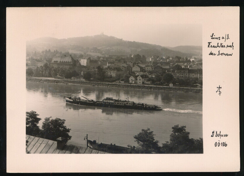 AK aus Linz an der Donau Frachter auf der Donau Oberösterreich (2656)