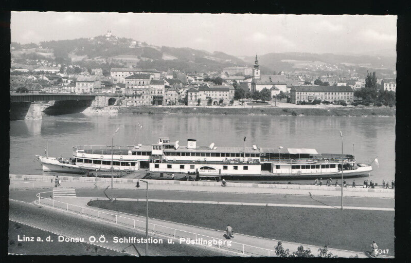 AK aus Linz an der Donau Schiffstation mit Dampfer Oberösterreich (2786)