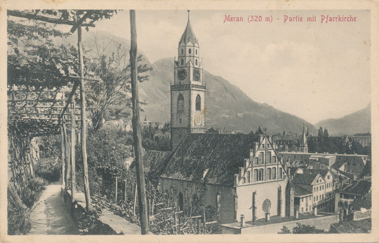 AK aus Meran mit Pfarrkirche Italien Ansichtskarte (8403)