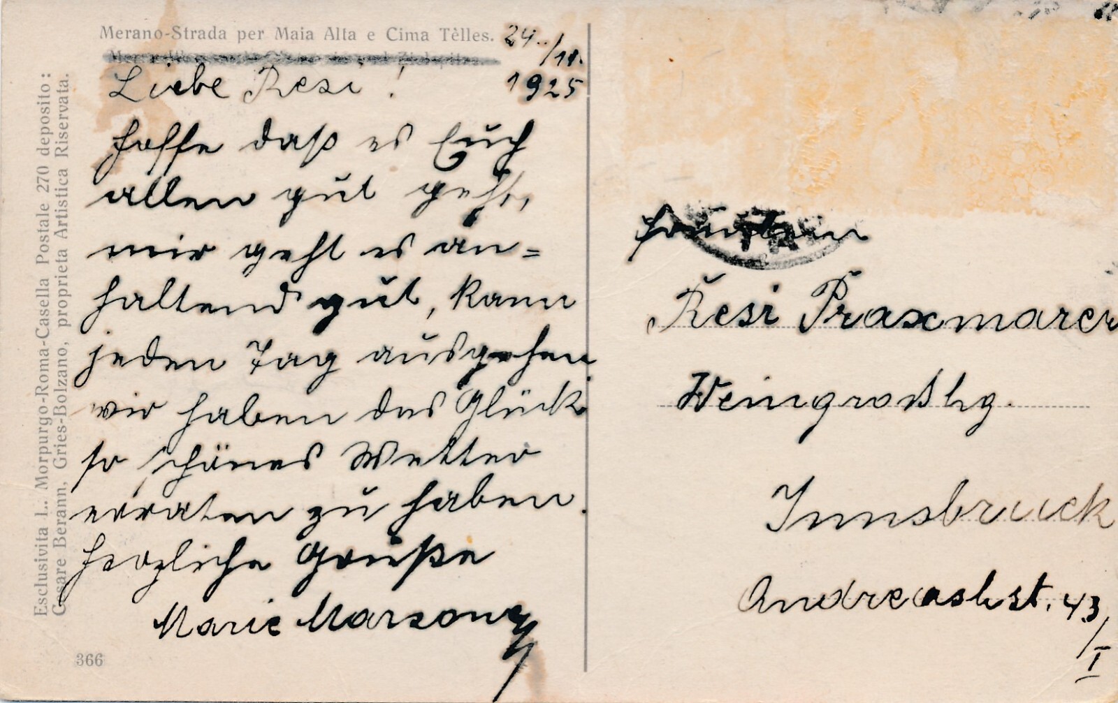 AK aus Merano Strada per Maia Alta e Cima Telles Italien (7746)