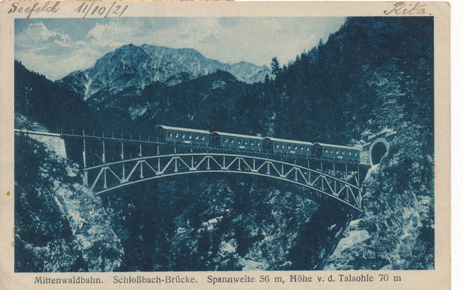 AK aus Mittenwaldbahn mit Schloßbach Brücke Tirol Ansichtskarte (9967)