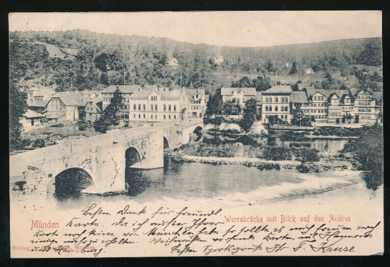 AK aus Münden Werrabrücke mit Blick auf den Andree Niedersachsen (832)
